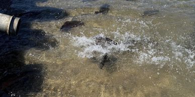 These rainbows are not your normal concrete pool raised fish. The beautiful trout we planted this year came from Calaveras Trout Farm, Inc., a privately owned hatchery in Snelling, CA.